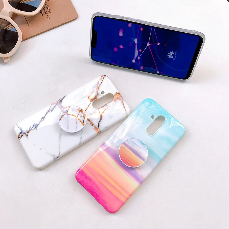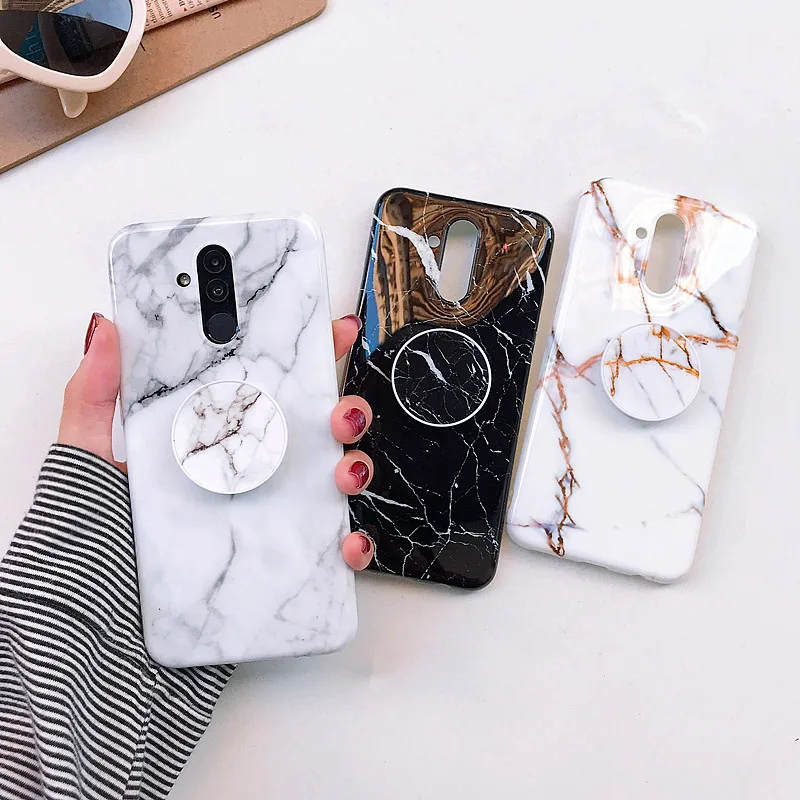 Marble phone case with phone holder for iphone 11 7P 8P XS MAX good quality marble case for huawei P30 PRO mate 20 lite